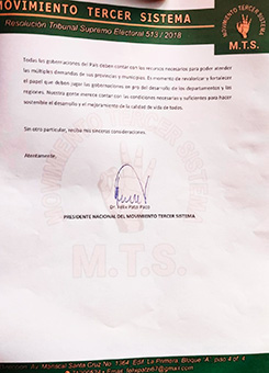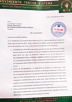 El candidato a la Gobernación del departamento de La PAZ, Dr Félix Patzi, presentó una carta oficial dirigida al Presidente del Estado Plurinacional de Bolivia, Rodrigo Paz, solicitando la incorporación inmediata del tratamiento del 50/50 de coparticipación tributaria en la Ley Financiera reformulada de la gestión 2026.