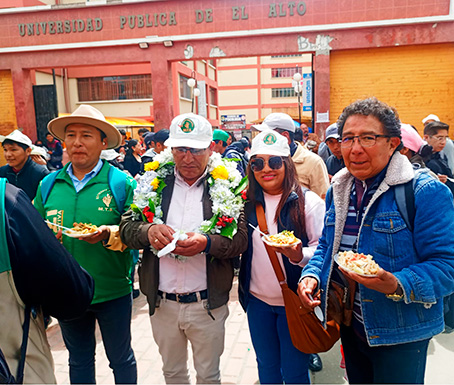 Este compartimiento ocurrió al mediodía, en el trayecto entre la Estación UPEA del Teleférico Azul y la puerta del Edificio Histórico de creación social de la UPEA (año 2000), donde Patzi compartió mucha alegría, repartió cuadernos y bolígrafos a los estudiantes, derrochó alegría y bailó la morenada “Con Félix Patzi, siempre lo mejor”.